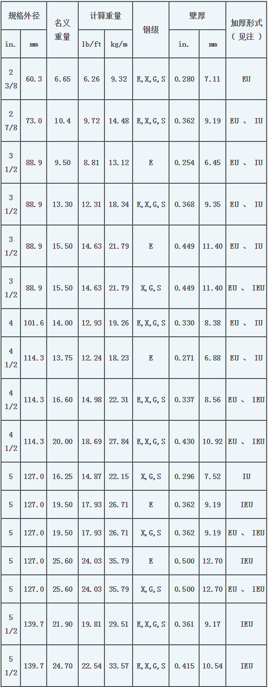 注:EU-外加厚;IU-內加厚;IEU-內外加厚